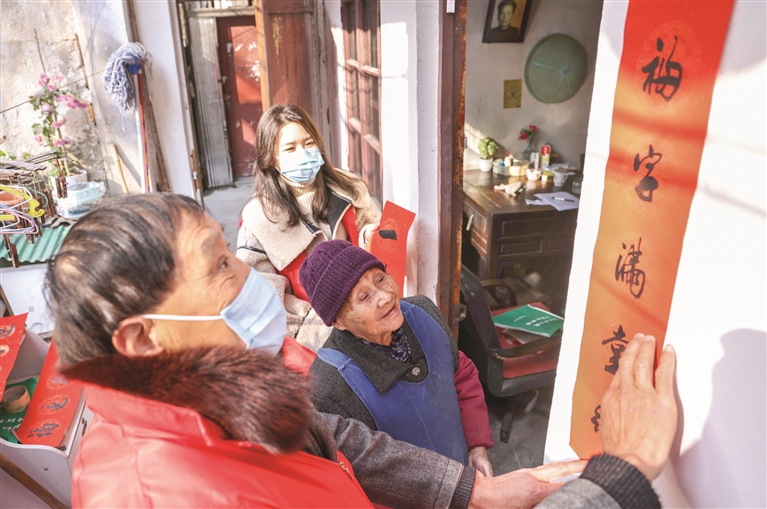 近日,城厢街道江寺社区开展“银龄守护关爱独居老人”活动,给结对的独居老人们送去了春联、福字等物品,并仔细检查老人家中电器、燃气等是否存在安全隐患,用实际行动为老人们送去一份温暖。 首席记者 唐柯 记者 郭立宏 摄