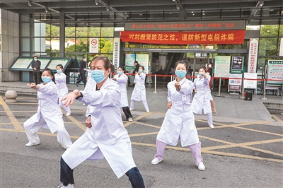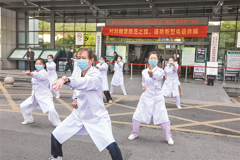 4月7日,区中医院开展“舞动中国·喜迎亚运”集体八段锦推广活动,通过集体练习八段锦,充分展现医护人员热心亚运、健康向上的精神风貌。 通讯员 章瑜 洪斐 首席记者 唐柯 摄