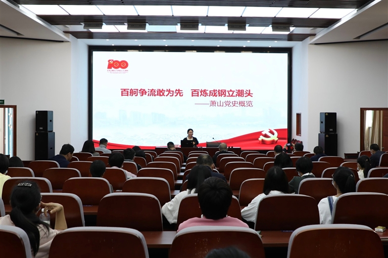 在4月的党员固定日活动中,浙江电大萧山学院特别邀请了萧山区党史研究室副主任、萧山区党史学习教育专家宣讲团成员钟丽佳为党员师生们作题为《百舸争流敢为先,百炼成钢立潮头——萧山党史概览》的专题讲座。