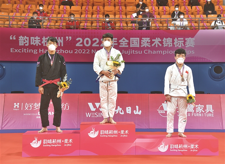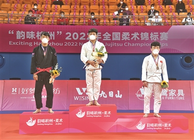 昨日,“韵味杭州”2022年全国柔术锦标赛在临浦体育馆拉开帷幕,并产生了首金。(相关报道详见第8版) 记者 范方斌 摄