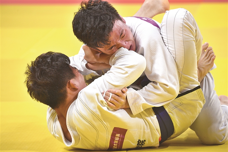 在记者看来,柔术,是一个以小搏大的智力游戏,最大的魅力在于以柔克刚,可以让身材瘦弱的人通过技巧去制服更大体格的对手。在2022年第19届亚运会组委会官网上,是这样解释比赛规则的:“柔术在两位运动员间进行比赛,目标是通过锁、绞等动作得分领先对手取胜。”