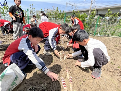 宁东社区新时代文明实践站联合辖区内学校,在初心青苗学园中开展各式各样的农耕体验活动,让孩子们在劳动中学习生态知识。