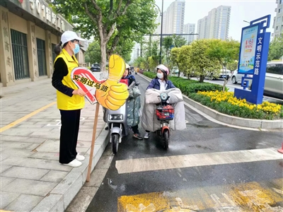 常态化开展文明交通劝导志愿服务活动,并向群众宣传社区文明行为规范内容,号召社区居民共同抵制不文明行为和不文明风气,共同建设风尚新美、环境秀美、生活乐美的社区家园。