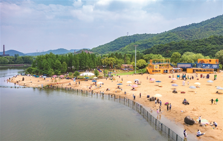14日上午,不少游客来到湘湖边重新开放不久的“金沙戏水”景点游玩。据悉,为适应更多游客的需求,该景点从去年开始重新规划改造,增加了攀岩、沙滩摩托车等十余个游乐项目。