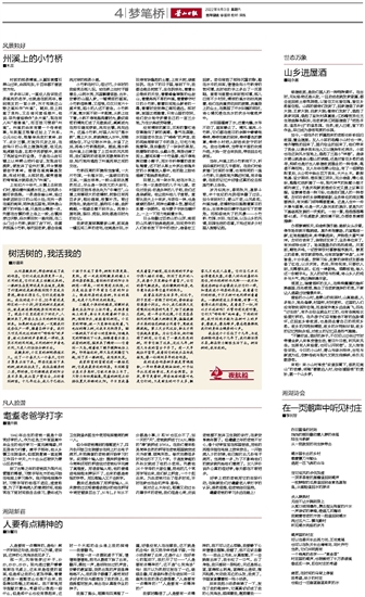 小竹桥在村口,很讨巧,少年时的我经常去那儿玩。站在桥上往村子里看去,山明水秀,风里飘着悠扬、古朴、安静的山里人家,一幅清丽的画面。小竹桥很单薄,又很窄,仅仅只有六十厘米宽,胆小的人还不敢走。小竹桥不高,离水面不到一米距离,从桥上往下看,小桥不停地摇晃着时光,縠纹细密的清流汇成了无数涡纹,粼粼波光在卵石缝间穿梭,流向古镇,流向远方。这座小竹桥,村里人叫它“搭水桥”,遇上大水,桥就得放入水中,用钢缆拴住,不让它被水冲走,水退了之后,再将小竹桥搭起来。据说,搭水桥在州溪上已跨越了上百年的风风雨雨,我们聪明的老祖宗用最简单的方法,轻巧地沟通起了州溪两岸之间的交往。