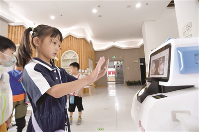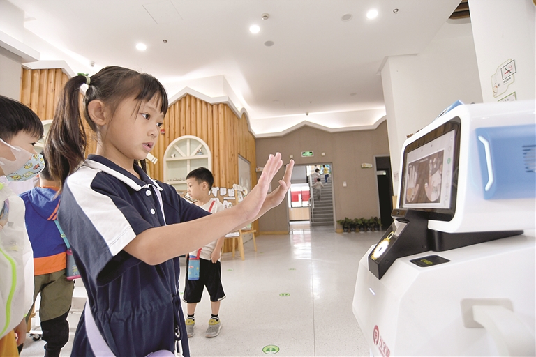 这学期,浙师大附属汇宇幼儿园来了一个特殊的小伙伴——晨检机器人,每天早上迎接孩子们,自动检测手部卫生及口眼红肿等情况,为他们的健康护航。