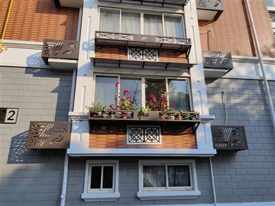 从踏入盈兴公寓大门的一刻起,满满的“工业风”设计感扑面而来,每个细节都彰显着独特的气质——大到文化小广场、墙面设计,小到楼道门牌、路灯,都在讲述着宁围的故事。文化小广场中,以“奋斗”为主题的小花坛和记录宁围不同年代大事记的照片墙讲述着宁围“为”文化精神的内涵,镂空的古铜色长廊,既是小型历史展陈馆,同时也是休憩场地,这种将文化充分融入的设计,于无声中传承着“敢想敢为”的宁围精神。