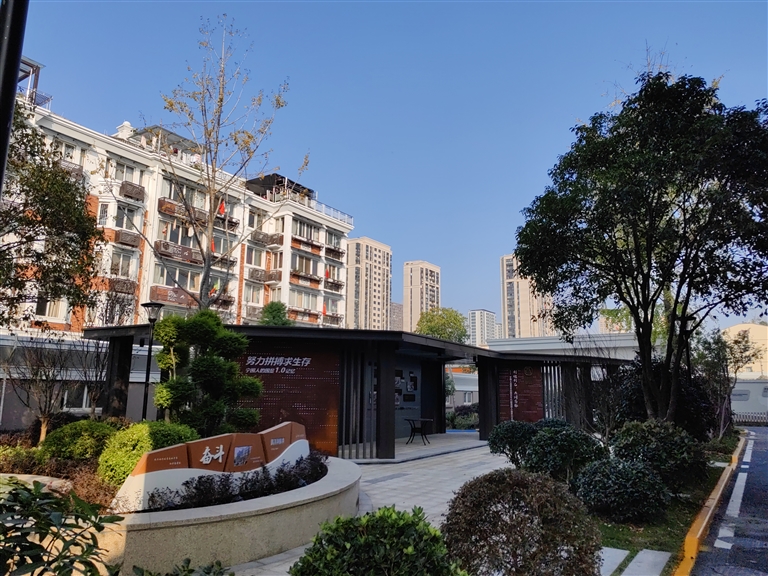 昔日斑驳的楼房外立面重新粉刷,整洁如新;洁白的小区围墙上,装饰着精心设计的“为”文化标志和“老底子”文化;小而精的小区公园内,充满创意的儿童游乐设施被绿植环绕……最近,盈兴公寓、和谐弄小区、生兴路小区、宁泰家园、宁都花园5个小区的居民正在体验全新的生活。