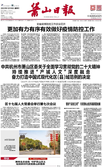 1.充分认识党的二十大的历史地位与重大意义。党的二十大是在全国各族人民迈上全面建设社会主义现代化国家新征程、向第二个百年奋斗目标进军的关键时刻召开的一次十分重要的大会。大会郑重宣示我们党在新征程上举什么旗、走什么路、以什么样的精神状态、朝着什么样的目标继续前进的重大问题,深刻阐释新时代坚持和发展中国特色社会主义的一系列重大理论和实践问题,科学擘画全面建设社会主义现代化国家、全面推进中华民族伟大复兴的宏伟蓝图,审议通过《中国共产党章程(修正案)》,选举产生以习近平同志为核心的新一届中央领导集体,取得了丰硕的理论成果、实践成果、制度成果。全区上下要深刻理解蕴含其中的思想精髓和核心要义,全面把握过去5年工作和新时代10年伟大变革的重大意义,充分认识取得伟大成就的根本在于习近平总书记的领航掌舵、在于习近平新时代中国特色社会主义思想的科学指引;全面把握习近平新时代中国特色社会主义思想的世界观和方法论,深刻领会“两个结合”“六个必须坚持”,坚定不移把党的创新理论贯彻落实到工作的各方面、全过程;全面把握以中国式现代化全面推进中华民族伟大复兴的使命任务,率先探索具有普遍意义的现代化和共同富裕路径,以勇立潮头的姿态奋力探索中国式现代化在萧山的生动实践;全面把握以伟大自我革命引领伟大社会革命的重要要求,扛起全面从严治党政治责任,推进新时代党的建设新的伟大工程;全面把握团结奋斗的时代要求,牢固树立以人民为中心的发展思想,汇聚起当好全市领头雁、成为全省排头兵、争做全国先行者的磅礴力量。