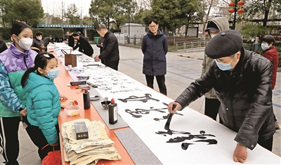 近日,蜀山街道党群服务中心开展“百米长卷迎亚运”活动,30余位农民书画协会会员激情满腔,书写“激情亚运,有你更精彩”等词句,迎接杭州亚运会。 通讯员 杨贤兴 首席记者 唐柯