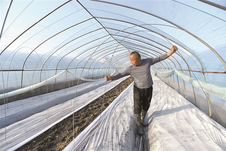 一年之计在于春,在益农镇三围村,农户开始搭建葫芦棚。