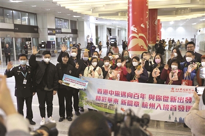 本报讯 (首席记者 黄婷 通讯员 林梦诗 陈佳伟)“欢迎来杭!”2月15日18时50分,18名香港游客抵达萧山国际机场入境候检大厅,他们将从体验宋韵文化开始,开启四晚五天的宋韵迎春之旅。这是国家恢复内地居民与香港、澳门团队旅游经营活动后的浙江首个香港入境旅游团,标志着浙江入境游正式重启。