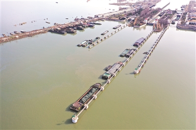 图为2月14日,货船有序通过位于江苏宿迁的京杭大运河皂河船闸。
