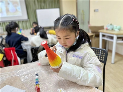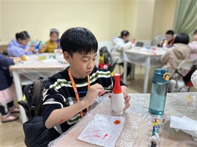 为丰富小记者们的课余生活,培养他们的动手能力。2月12日,萧报小记者团开展了彩绘陶艺素胚创作活动。在宣宣老师的带领下,小记者们先了解陶瓷的历史与发展背景。通过老师生动有趣的讲解,小记者们对素胚彩绘兴趣高涨,一个个摩拳擦掌,迫不及待地想要试试手。彩绘素胚,是直接采用丙烯颜料,在白色的素胚上描绘图案,小记者们发挥丰富的想象力,将一个个空白的瓷盘画上自己喜欢的图案,填充各种色彩。通过一个多小时的创作,白色的素胚在大家的装点下,形成一个个色彩斑斓、独具特色的作品。小记者们认真欣赏着自己亲手完成的精美作品,内心充满了成就感。(文/摄 宣舒瑶)