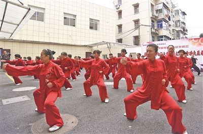 昨日,“萧然银龄文明行”系列活动之“银龄迎亚运·萧然夕阳红”区老年电视大学学员太极健身功夫展示活动举行,来自该校太极系列教学班的4支代表队以及广场舞班、健身气功班等共100余名学员参加,展示了太极运动的独特魅力,为杭州亚运会营造浓厚的全民健身氛围。 记者 范方斌 摄