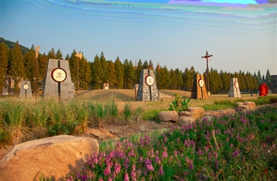 岳驻村原有一处岳飞点将台遗址,后随时间流逝而湮灭。不过,进化镇后又在欢潭村兴建一处新的点将台,作为传承岳飞精神,弘扬岳飞文化的研学户外营地。点将台周边是一片开阔的草地,两侧大石筑成的擂鼓台依次铺排,瞭望亭在入口处夹道相迎。欢潭对岳飞的纪念紧扣本底文化的根脉,这是对历史最好的回应。