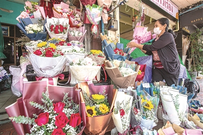 在泰国曼谷帕空鲜花市场,来自云南的鲜花随处可见。云南鲜花经过采摘、修枝、包装等过程,仅需近40小时的冷链运输便可抵达曼谷。从澜沧江边到湄南河畔,作为“云南名片”的鲜花,化作丝路花雨,香飘世界。