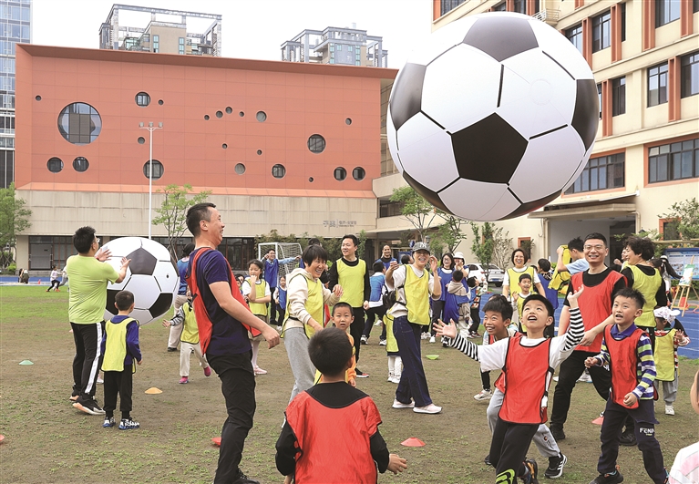 近日,北干街道钱塘明月社区在文博小学举办钱塘潮玩亚运季之亲子运动会,50组家庭报名参加,投篮高手、盲人跨栏、足球小将、急速皮划艇、划龙舟等项目轮番上演,亲子配合,热闹又开心。