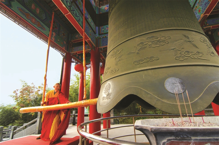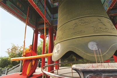 “杨岐钟声”是湘湖古八景之一,与杭州净慈寺的“南屏晚钟”齐名。2008年被评为萧山十景。“借问霜天何处钟,船娘遥指杨岐寺”的诗句,描写的就是当年的盛况。杨岐寺是湘湖最壮观最具风格的一座寺庙。现在的杨岐寺钟,是中国佛教协会赠送给杨岐禅寺的,高4米,最大口径2.6米,重达12.8吨,是迄今为止江南最大的一口铜钟。钟的顶部铸有56朵莲花,代表着我国的56个民族;钟上还铸有108尊观音化身佛像,或寓意着撞钟即可驱除人世间的108种烦恼吧。