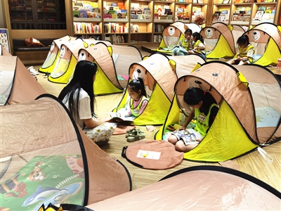除了“露营”体验外,还有专业老师的阅读分享、书屋寻宝等活动,小读者可以在享受休闲娱乐的同时感受阅读的快乐,从而在活动中喜欢上阅读,重新回归到阅读中来。活动将阅读与精致露营相结合,给小读者带来了轻松愉快的暑期体验。