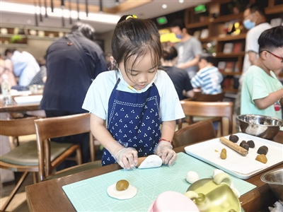 整个奇趣课堂包含欢乐故事会、绘本精读课、创意手工坊、生活体验堂、绘本表演剧、甜心烘焙屋、创意彩陶课、传统文化、小小艺术家等一系列专属活动内容。如,邀请专业的茶艺老师,为读者讲解茶叶知识,识茶品茶懂茶,在包含国学色彩的文化活动中赓续茶文化,享受放松惬意的品质生活,共同品味文化底蕴;让读者在现场体验制作冰皮月饼的乐趣,感受传统民俗文化和浓厚的节日氛围,体验中国传统节日的魅力,共度浓情四溢的美好时光。通过不同版块的研究和策划,孩子和家长在书店中寻找到更多的交集点。这也实现了书店以活动为依托,以更为贴近读者的姿态,审视日常的美好,倡导简单生活,让读者在书店遇见美。