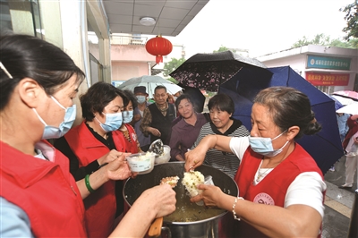 6日是立夏,城厢街道俊良社区用豌豆、咸肉、笋丁等精心制作立夏饭,送给社区居民品尝,一起体验传统民俗。