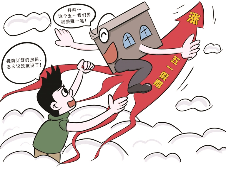 据潮新闻报道,五一前夕,遭遇被民宿“毁约”的旅客不少,民宿旅馆坐地起价,理由更是千奇百怪,如装修、倒闭、老板换人。杭州的邓女士就遭遇了民宿毁约,她在3月16日通过旅游平台预订了一家成都的民宿,3晚价格345元。几天后,她接到民宿电话,对方说民宿在装修,希望邓女士能主动退订。此后,邓女士发现这家民宿在其他平台上出售同日期的同款房源,但是房价已经涨到了500多元一晚。 漫画 俞钦洋
