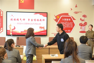 看到孩子们的精彩展示,老师们也加入学礼队伍。他们从“着装礼仪”“校园礼仪”“公共礼仪”等方面了解了礼仪的重要性,掌握了规范礼仪行为的有效方法,明白了要从自身的一言一行、一举一动开始,以榜样示范和潜移默化来引导学生,让美的种子,开出一朵朵阳光、自信的花。