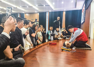 近日,“迎亚运 护健康”红十字救护员培训专场活动在进化镇举行,应急救护培训老师为大家讲解了心肺复苏、AED操作、出血基本包扎方法等知识要点。 首席记者 唐柯 摄