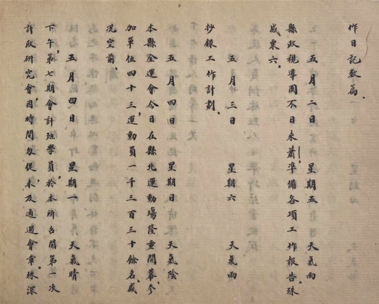 此外,王耀曾在其民国36年(1947年)5月4日的日记中也提到,“本县全运会今日在县北运动场隆重开幕,参加单位四十三,运动员一千三百三十余名,盛况空前。”