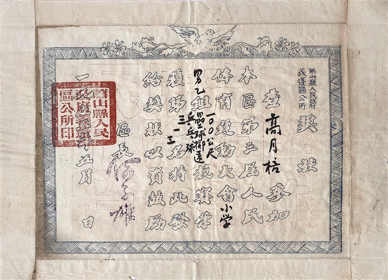 图5:1955年萧山县义蓬区第三届人民体育运动大会奖状