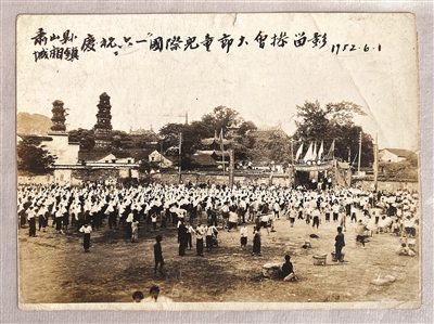 图3:1952年萧山县城厢镇庆祝六一国际儿童节大会操留影