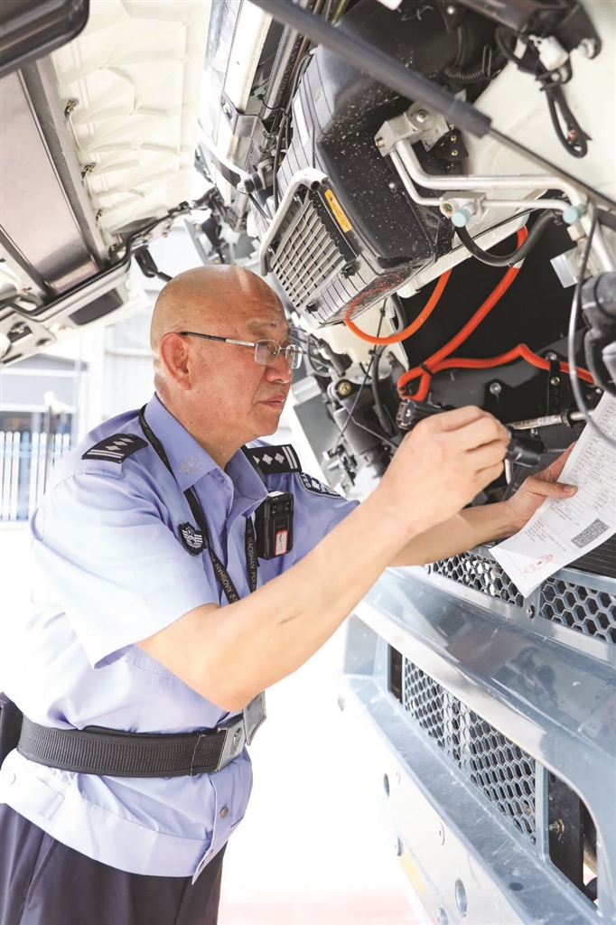 这些天,当他爬上一辆辆两三米高的货车检查时,制服总是很快被汗水浸透。“老方头,你在下头搭把手就可以了。”同事们担心如此高强度的工作量,方有法会吃不消,可他却笑着摆摆手,始终专注于手头的工作。