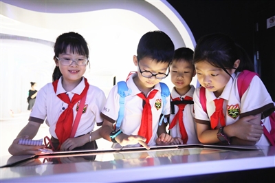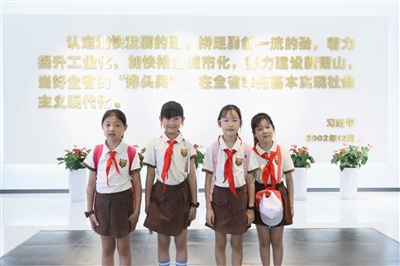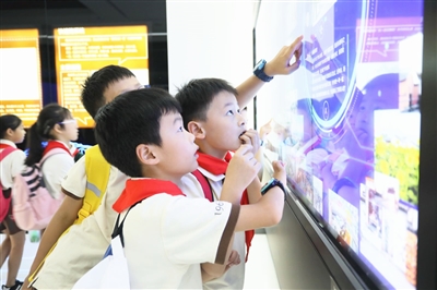 ●徐一可:参观途中,我感觉时间好像会变魔术,它带领我们走进了萧山的昨天、今天和明天。在这里,我乘着黄包车,悠闲地游览了老城的特色风景;在这里,我坐上“小飞船”,身临其境地感受了波涛汹涌的钱塘江水,欣赏了亮丽时尚的亚运场馆……家乡的变化,让我感到骄傲和自豪。那一刻,我立志做一名有理想、有本领、有担当的新时代好少年,让自己胸前的红领巾更加鲜艳。