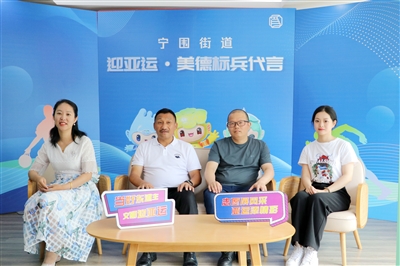为深入推进“迎亚运·美德标兵代言”专项行动,在全社会掀起文明迎亚运的热潮,7月26日,宁围街道邀请辖区内道德模范、身边好人作为亚运代言人来到宁围荣光直播间,“萧山好人”俞明强、“萧山区最美家庭”代表李佳、“最美宁围人”胡志明、“宁围街道美德标兵”孺子牛公益志愿服务总队代表在直播间内畅谈交流,讲述自己的故事和为迎接亚运作出的准备,引领广大人民群众文明旅游、文明出行、文明待客、文明观赛,以最美的“主人翁”姿态迎接亚运。