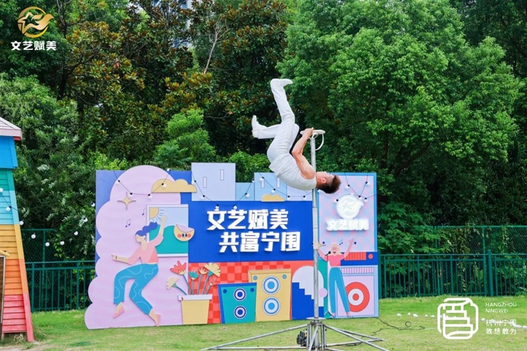 全域文化繁荣,全民精神富有。自7月起,宁围街道启动“文艺赋美 共富宁围”系列活动,在人流密集的商业街坊或公园景区等适宜空间,每周两次开展常态化艺术展演活动,活动将延续至12月底。活动将居民喜欢的各种文艺表演带到身边,打造多点、高频、流动的文艺景观,提升文化品位和艺术气质,以文艺之美点亮精神共富。7月和8月,已开展杂技表演、动感舞蹈、相声、飞牌绘画、小丑派对等多场文艺展演,为辖区居民的夏日夜晚送上活力“清凉大餐”。