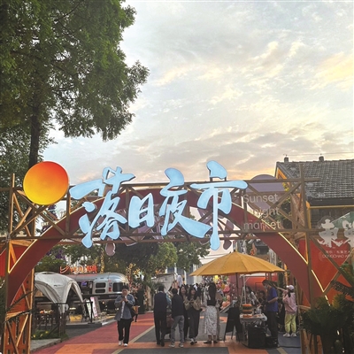“落日夜市”,傍晚5点开始营业,集市里有美食推车,可以尝尝街边美式汉堡、秋日里的关东煮,还有馄饨、芝士条、烧烤等多种小吃。此外,还有手办、鲜花、DIY手工艺品等多种多样的小配件。你可以约上家人、好友、恋人,一起去这个潮人扎堆的夜市里溜达,收获惊喜和快乐。年轻化的集市氛围,完美契合了年轻人追求松弛感和浪漫的独特需求。