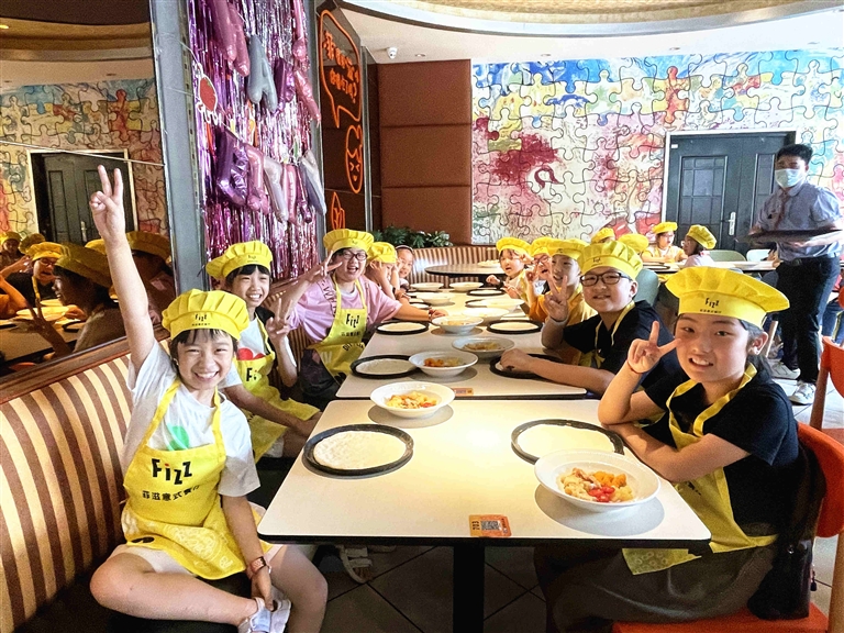 9月28日,小记者们相约来到菲滋意式休闲餐厅(新世纪广场店),开启他们独特的小小星厨披萨DIY活动。