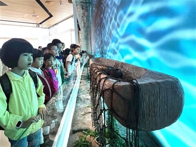 9月24日,小记者们走进萧山博物馆,开启了一场穿越时空之旅。博物馆一楼的展馆陈列着各种各样的动物化石,看着这些平时从未见过的化石,小记者们既兴奋又好奇。虽然它们已经灭绝,但如今通过科技的手段,将这些生物的模样描绘出来,让大家能够更好地了解远古生物的形态以及当时的生存环境。二楼展馆陈列的则是各式各样的文物,其中也有不少是根据文献还原的模型,小记者们发现,古人们的衣食住行也都被生动展现出来了,一样样普通的旧物件让曾经古朴的生活跃然于小记者们的脑海之中。此外,大家还了解了陶瓷的制作过程。一块块不同年代的陶瓷碎片,仿佛向大家述说了陶瓷制作工艺的演变;一件件展示的成品,让小记者们被古人的智慧和技艺深深折服。这些古生物化石如同精美的文字和生动的语言,记录着生命进化的过程和各种地质事件,也为我们现在的科学研究提供了珍贵的物证。(文/摄 蔚佳豪)