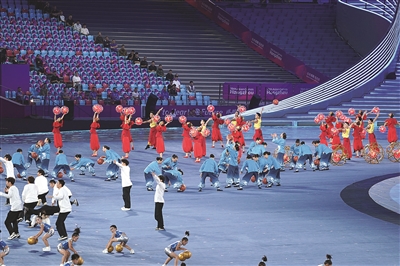 9月23日,杭州第19届亚运会盛大启幕。开幕式暖场节目中,一支由28人组成的篮球舞蹈操队伍,格外吸引眼球。她们手抛上下翻飞的篮球,脚踩轻灵的舞步,根本看不出来是一群平均年龄超过60岁的奶奶们。