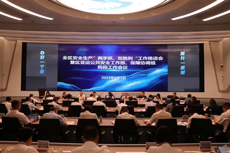 在全区亚运工作组织架构基础上,整合安委会、防汛防台指挥部、公共安全部、保障协调组等工作职能,统筹人员力量、开展联合值守,明确各部门单位责任分工,确保专班合署运作、责任压实到人。