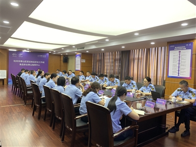 为确保赛事期间全区涉亚食品安全信息第一时间接收、研判和处置,自9月16日起,区市场监管局启动应急值守制度,专门成立区亚运食品安全赛时指挥中心,每天组织召开亚运保障调度例会,实时接收和传达省市区调度指令,为一线“赛事侧”驻点保障人员和“城市侧”巡查监管人员提供坚强后盾。