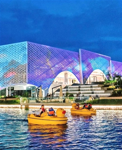 在钱江世纪公园,既可以在“你好广场”亚运观赛空间看比赛,也能在亚洲主题花卉展感受一步一景;来到江边,散散步吹吹风,细品江景、感受秋意;夜幕降临,“小黄鸭”游船、落日沙滩、小椰子树,都推着公园在社交网络“出圈”。公园的花灯与城市灯光交相辉映,堪称繁花似锦、如梦如幻。