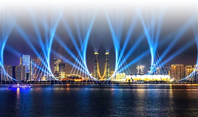 当亚运氛围燃动杭城,钱塘江两岸的夜景也刷屏互联网。打造“流光溢彩”的夜景环境,不是一束光那么简单,而是一个涵盖美学、光学、文化、创意、建筑等多领域融合的项目。为此,杭州国际博览中心、杭州奥体中心体育游泳馆、七甲河景观等都进行了夜景灯光亚运会适应性改造。