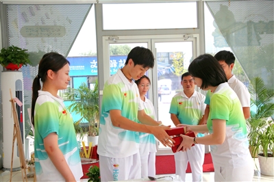 亚运期间,在萧山“你好广场”城市文明驿站,悉尼大学留学生诸葛约晴成为了“小青荷”志愿者。她和一众志愿者从早上8点半服务至晚上8点半,泡好茶水,摆放好驱蚊用品、文明宣传手册等物品,面带微笑在窗口站立,为有需之人提供服务……他们的坚守,收获了群众的谢意和满满的成就感。