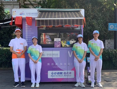 “你的背包不能带入场内,可以到对面的城心城意党群服务驿站寄存。”亚运赛事期间,身着红马甲的志愿者热心地为观赛市民提供帮助,成为场馆周边一道亮丽的风景线。