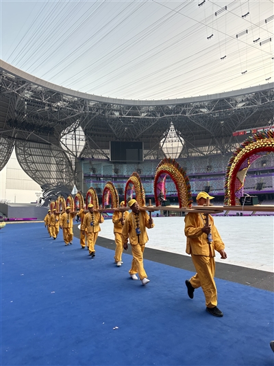 从2012年至今,河上板凳龙从乡村街头走向了世界舞台,节目《河上龙灯胜会》也经历多次修改。每次在排练现场,朱亚莲都会被深深感动。“非遗的力量真的很强大,它是老祖宗传下来的宝贵遗产,更是民族文化的的根和魂。我们也想通过亚洲盛会,展示浙江的非遗,杭州的非遗,萧山河上的非遗,让这一‘国遗’可以保护传承下去。”