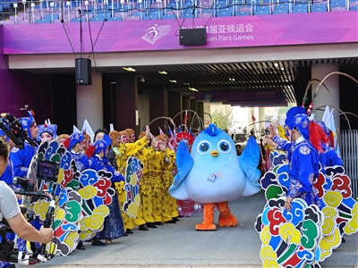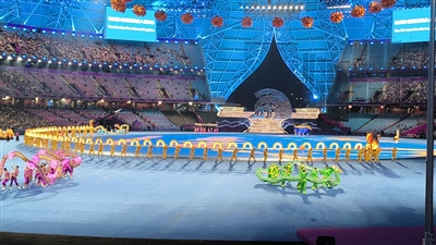 五星红旗、亚残奥委会会旗高高飘扬,来自亚洲各国和地区的残疾运动员,怀着光荣和梦想相聚一堂……10月22日晚,杭州第四届亚残运会开幕式隆重举行。