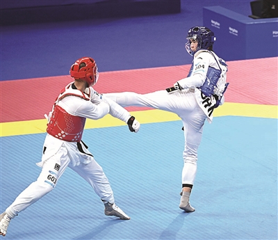 在随后进行的跆拳道女子K44 -65KG半决赛中,姚依楠依旧发挥稳定,率先击中对方有效得分部位,拿下2分。伴随着全场观众热烈的加油声、喝彩声,姚依楠越战越勇,一鼓作气,再次拿下一局。