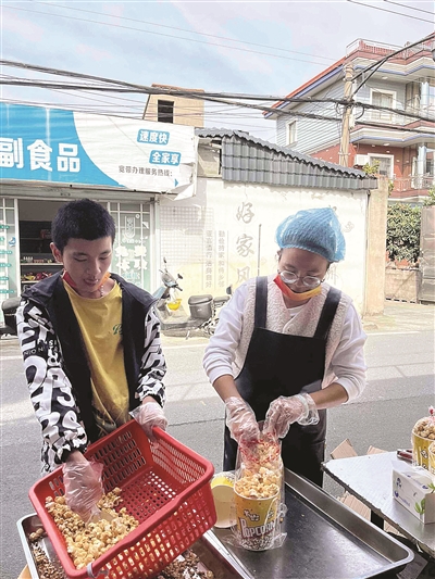 如今,涛涛的爆米花摊固定在镇上的幼儿园门口、地铁口。“上午我们会准备好几十份爆米花,然后下午两点半准时出摊。周一至周五在幼儿园门口,双休就在地铁口,这是涛涛自己决定的。”